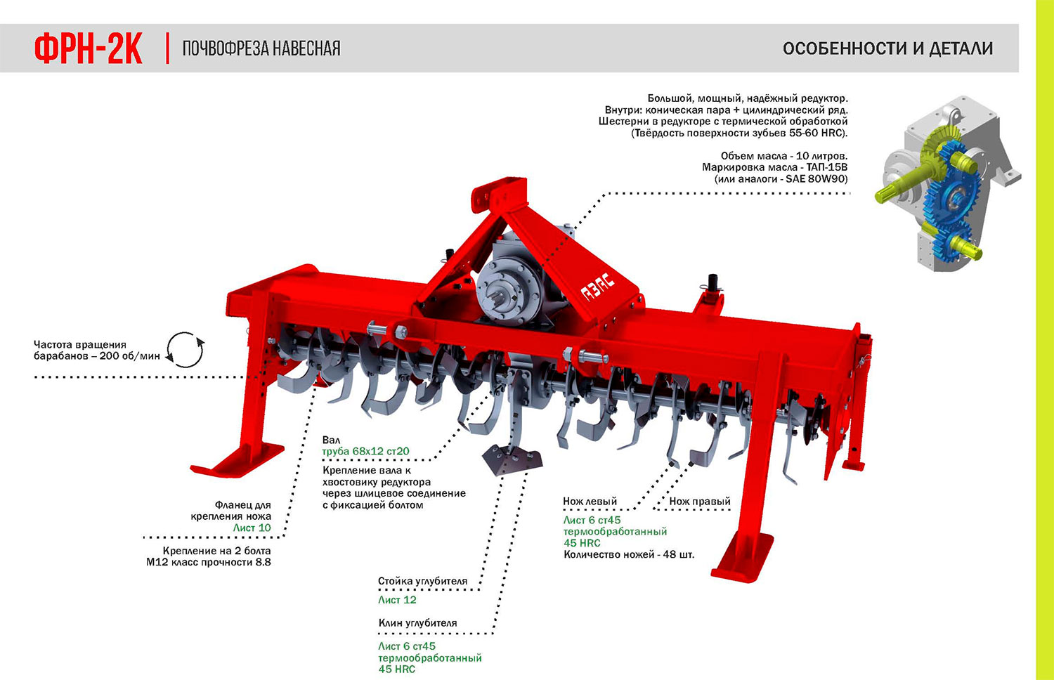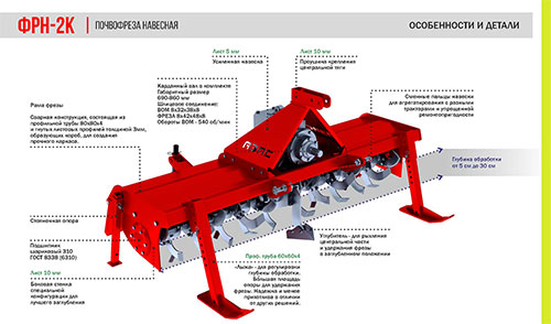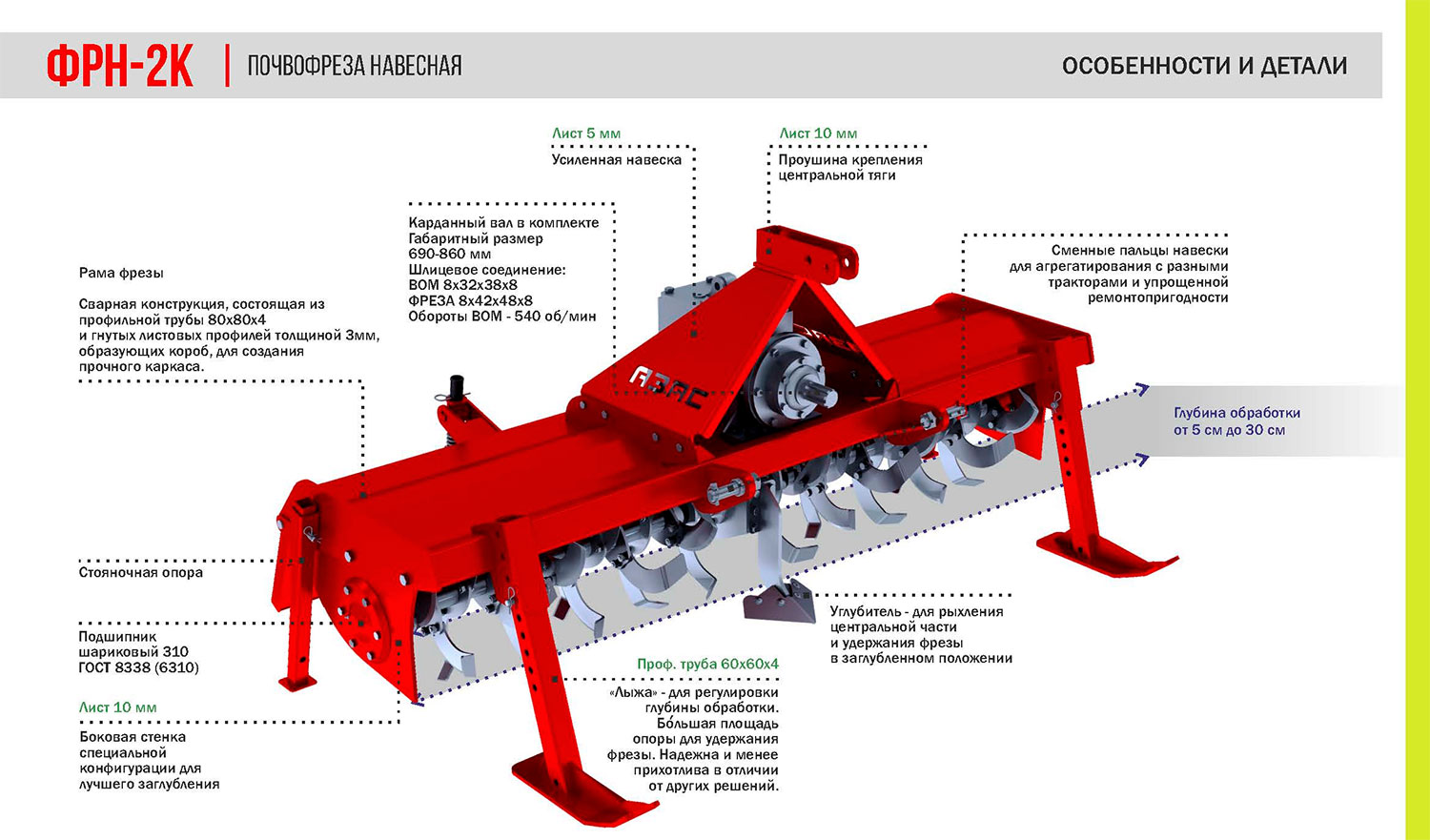 - Частота вращения ВОМ трактора, об/мин: 540.